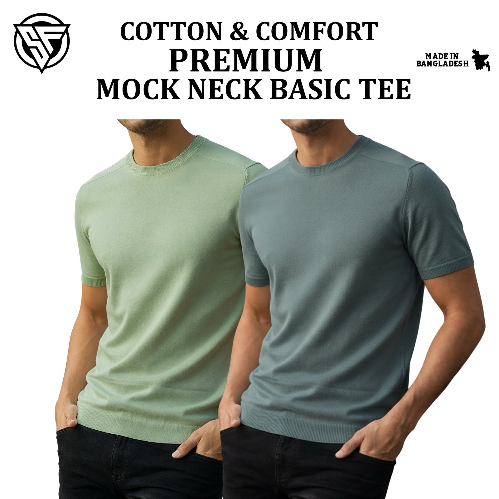 Men’s Mock Neck Basic T-Shirt made from breathable soft cotton (GSM 200+). Features a modern slim fit and stylish mock neck design—perfect for daily wear, college, office, and casual occasions.